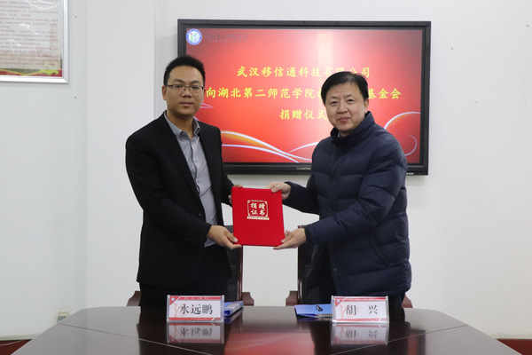 本网讯(通讯员 钟子奇)12月29日中午,武汉移信通科技有限公司捐赠仪式在计算机学院会议室举行。副校长胡兴出席捐赠仪式,校教育发展基金会主任王正喜主持。