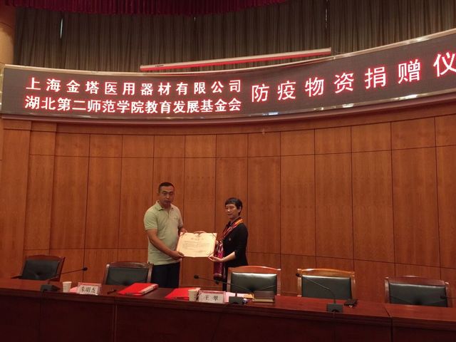 9月15日上午,学校教育发展基金会在行政楼1号会议室举行捐赠仪式。上海金塔医用器材有限公司湖北办事处朱明...